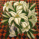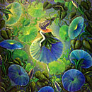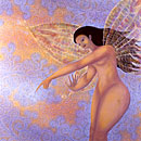 Naomi Yoneda Wesler paints daily in her loft above bustling Chinatown in New York City. Her brush dances from canvas to canvas (she works on more than one at a time) and she paints what she loves: a profusion of fairies, angels, flowers and animals. Inhabiting this creative environment with her are her cats, Miles and Gabriel and her husband, Bob.